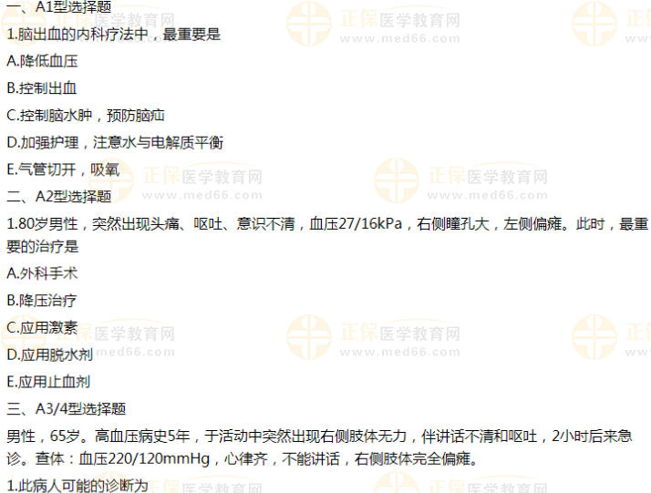 關(guān)于“2021年臨床執(zhí)業(yè)醫(yī)師考試四種常見的腦出血易錯(cuò)易混淆辨析(附題)”的內(nèi)容,相信參加2021年臨床執(zhí)業(yè)醫(yī)師考試的考生都在關(guān)注,醫(yī)學(xué)教育網(wǎng)編輯為大家總結(jié)了腦出血具體的考點(diǎn)和試題,詳情如下:
