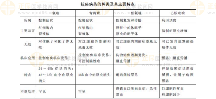 重點(diǎn)掌握殺滅瘧原蟲的配子體、裂殖體的適用藥物,對(duì)控制復(fù)發(fā)、預(yù)防、傳播的適用藥物也要明確。