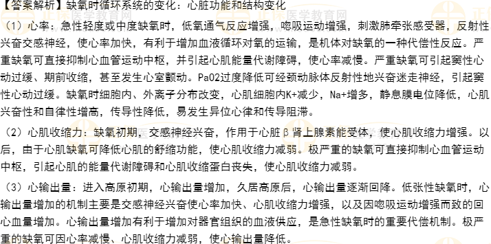 (4)心臟結(jié)構(gòu)改變:久居高原、慢性阻塞性肺疾病,由于持久的肺動(dòng)脈壓升高和血液黏滯度增加,使右心室負(fù)荷加重,右心室肥大,嚴(yán)重時(shí)發(fā)生心力衰竭。