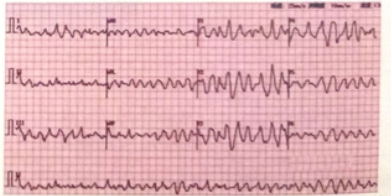 試題2:男,26歲。在參加馬拉松比賽,突然意識(shí)喪失5分鐘。最可能的心電圖診斷是(4分)