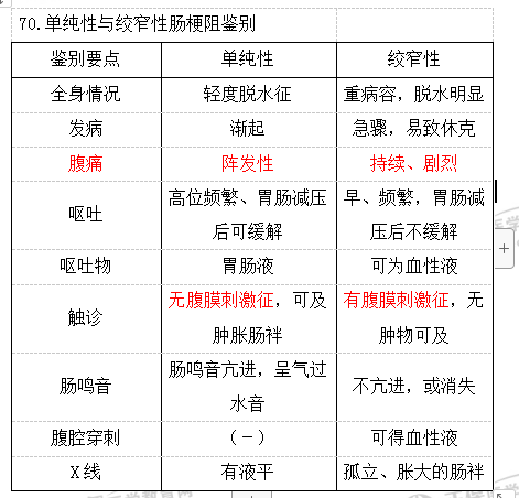 69.腸梗阻的臨床表現(xiàn):腹痛、嘔吐、腹脹、停止自肛門排氣排便。