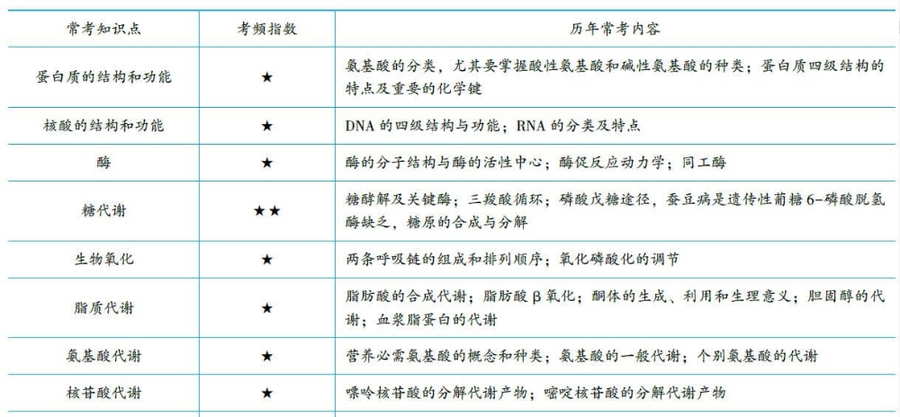 生物化學(xué)作為醫(yī)師的基礎(chǔ)科目,主要考查蛋白質(zhì)的結(jié)構(gòu)和功能、核酸以及糖、脂肪和蛋白質(zhì)三大物質(zhì)的代謝。與臨床疾病相關(guān)聯(lián)的考點,如分子病、蠶豆病、白化病、痛風(fēng)病、黃疸、苯丙酮尿癥等疾病與生物化學(xué)有關(guān)的知識點。建議考生: