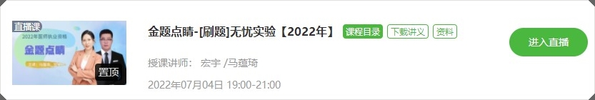 7月4日晚上將開展臨床執(zhí)業(yè)醫(yī)師無憂實(shí)驗(yàn)班、高效定制班金題點(diǎn)睛直播課,金題點(diǎn)睛直播課主旨為學(xué)員剖析解題思路,解鎖做題技巧。