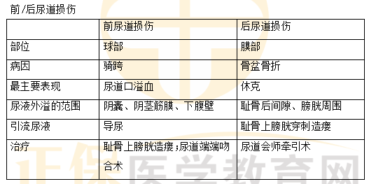 知識(shí)點(diǎn)鏈接:前/后尿道損傷