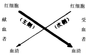 交叉配血試驗是將供血者的紅細胞和受血者的血清相混合,為試驗的主側(cè);將受血者的紅細胞和供血者的血清相混合,為試驗的次側(cè)。