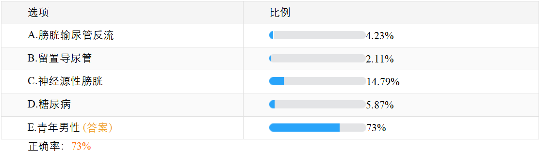 【正確率73%】尿路感染的易感因素不包括?