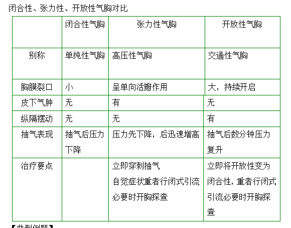 2023臨床執(zhí)業(yè)醫(yī)師每天一個知識點:閉合性、張力性、開放性氣胸對比