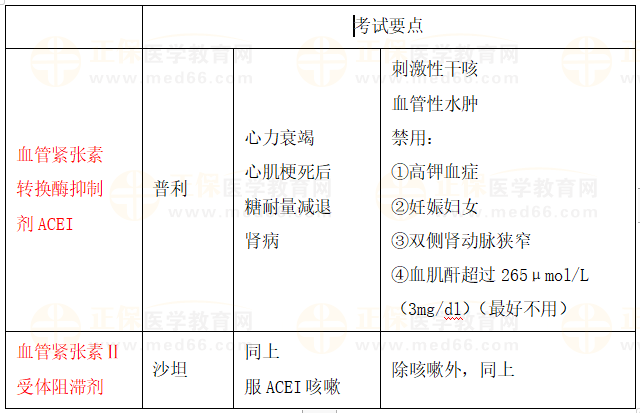 血管緊張素轉(zhuǎn)換酶抑制劑、血管緊張素Ⅱ受體阻滯劑考點概要