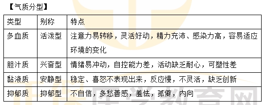 臨床執(zhí)業(yè)醫(yī)師考生備考中哪些內(nèi)容是考試中的重要考點(diǎn),有些考生前期會(huì)進(jìn)行知識(shí)點(diǎn)歸納到后期備考時(shí)間進(jìn)行大量的刷題。對(duì)于臨床執(zhí)業(yè)醫(yī)師綜合筆試知識(shí)點(diǎn)范圍大比較復(fù)雜,花大量時(shí)間進(jìn)行考點(diǎn)總結(jié)歸納,這里醫(yī)學(xué)教育網(wǎng)編輯臨床執(zhí)業(yè)醫(yī)師醫(yī)學(xué)綜合考試知識(shí)點(diǎn)《氣質(zhì)分型》,多練勤練最后考試的分?jǐn)?shù)才能高!