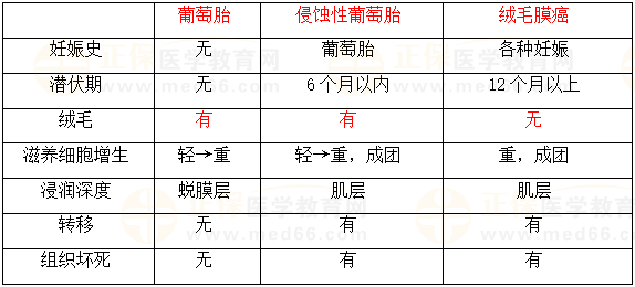 絨癌、侵蝕性葡萄胎、葡萄胎的鑒別