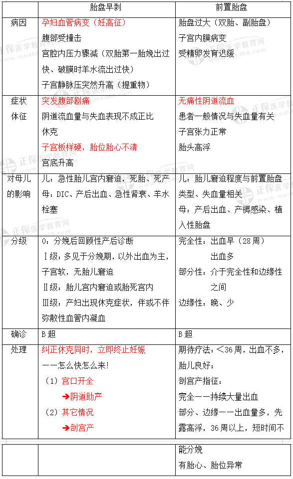 2023臨床執(zhí)業(yè)醫(yī)師二試易混淆考點(diǎn)胎盤早剝與前置胎盤對比記憶表