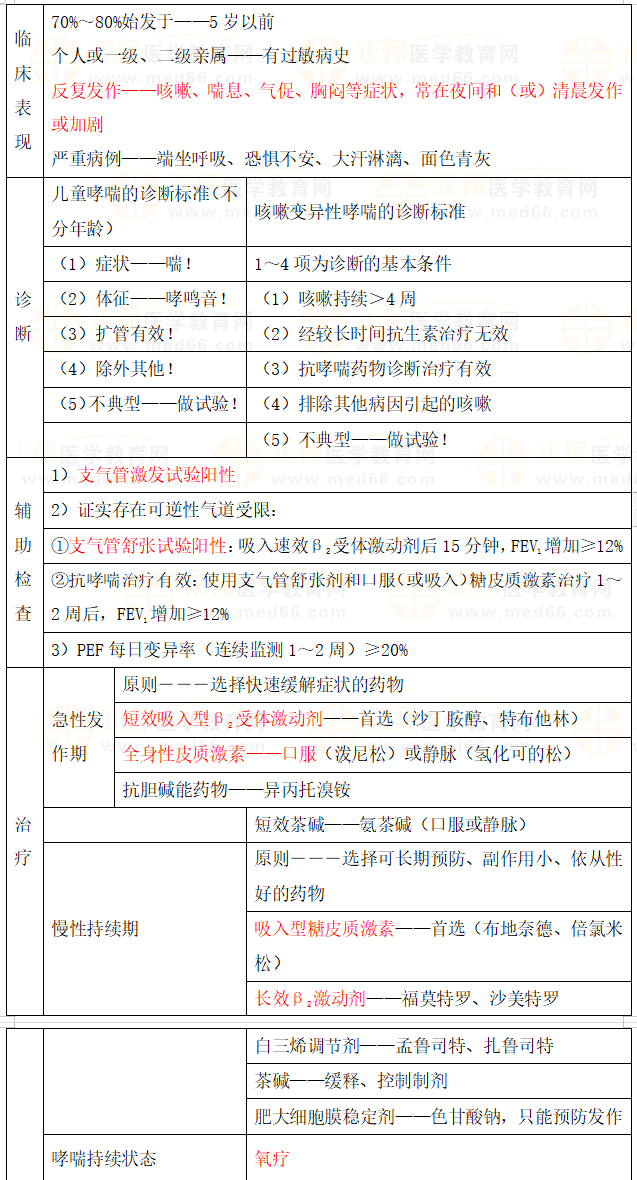 支氣管哮喘知識點匯總(臨床執(zhí)業(yè)醫(yī)師二試高頻易混淆考點)
