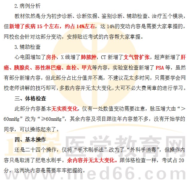 首先,整體來看,2024年臨床執(zhí)業(yè)醫(yī)師考試技能部分變動非常大!約30%。但是2024臨床執(zhí)業(yè)醫(yī)師考生不要慌!歷年的考試重點、難點目前還是考試高頻點。但是針對變化的內(nèi)容,我們在備考復(fù)習(xí)時要特別注意。按照往年考試規(guī)律,變動內(nèi)容作為考試重點的幾率很高。