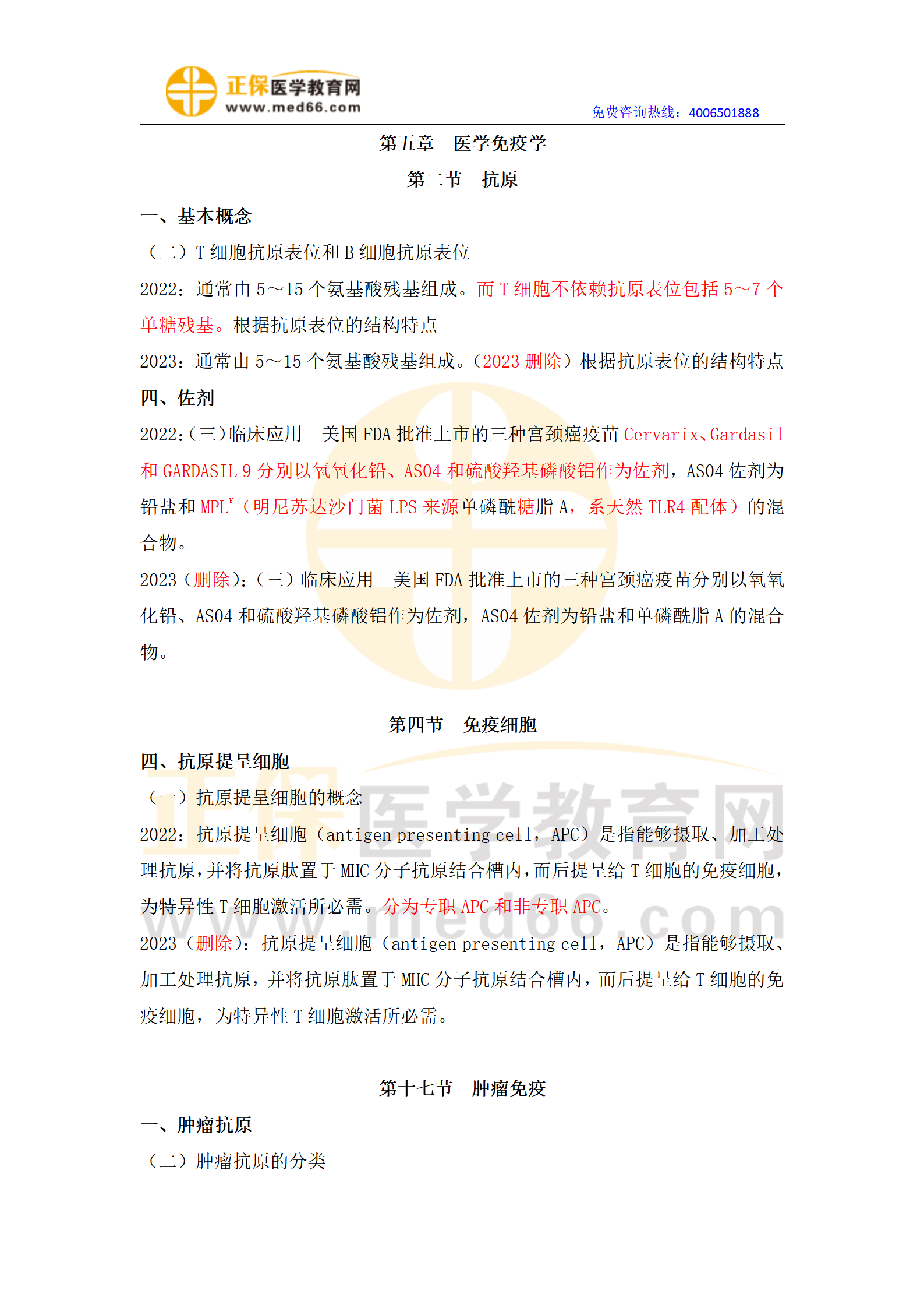 2023年臨床執(zhí)業(yè)醫(yī)師綜合筆試《醫(yī)學(xué)免疫學(xué)》教材變動(dòng)細(xì)則