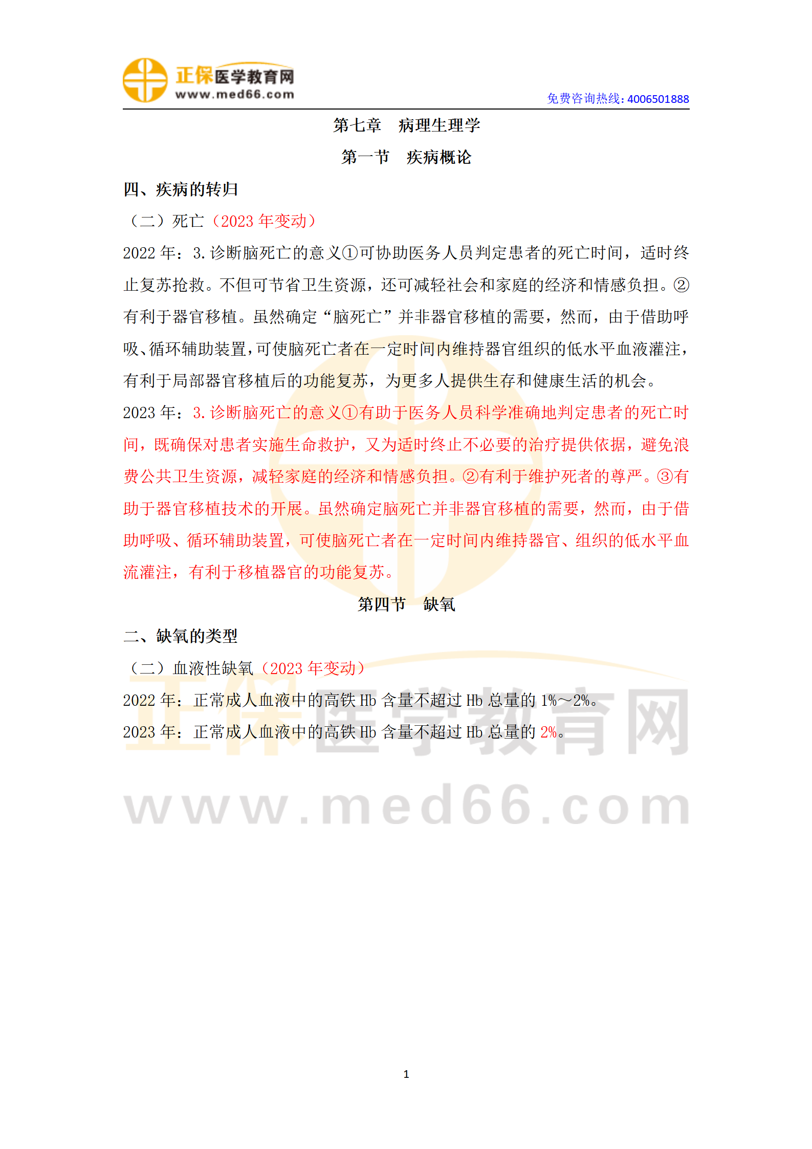 2023年臨床執(zhí)業(yè)醫(yī)師醫(yī)學(xué)綜合指導(dǎo)用書(shū)《病理生理學(xué)》教材變化