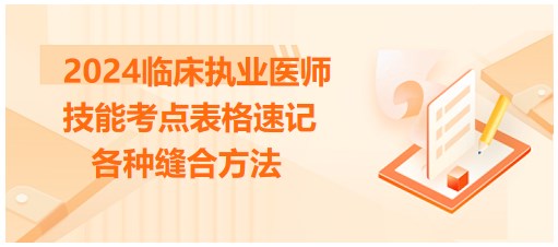 2024臨床執(zhí)業(yè)醫(yī)師考生請(qǐng)注意!實(shí)踐技能考試備考進(jìn)入倒計(jì)時(shí),一定堅(jiān)持每日備考復(fù)習(xí)加深考點(diǎn)記憶!正保醫(yī)學(xué)教育網(wǎng)幫考生整理了2024臨床執(zhí)業(yè)醫(yī)師技能考點(diǎn)總結(jié)表-各種縫合方法,趕快來(lái)背!