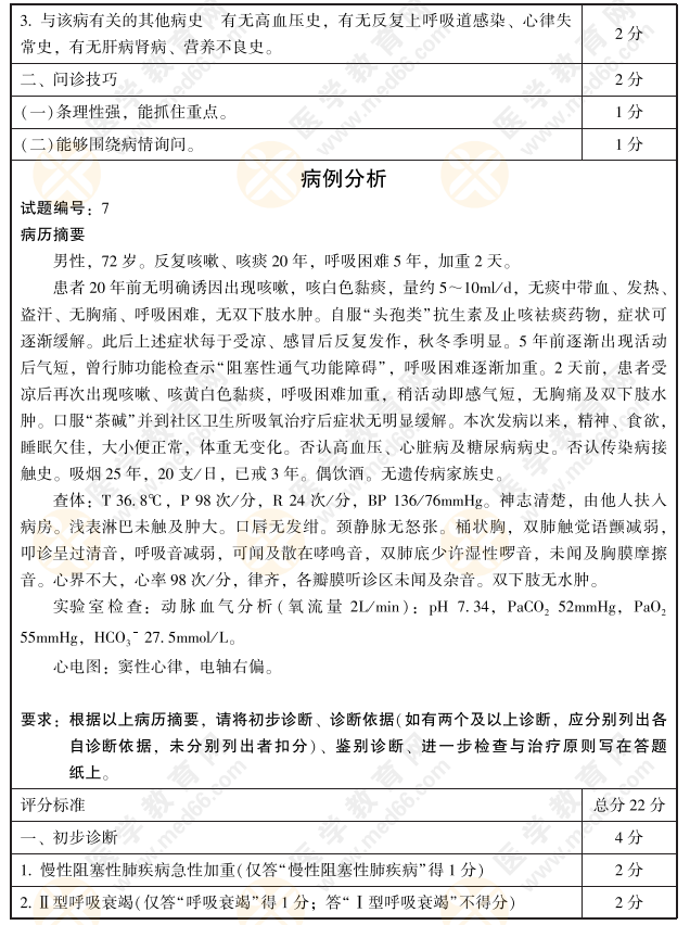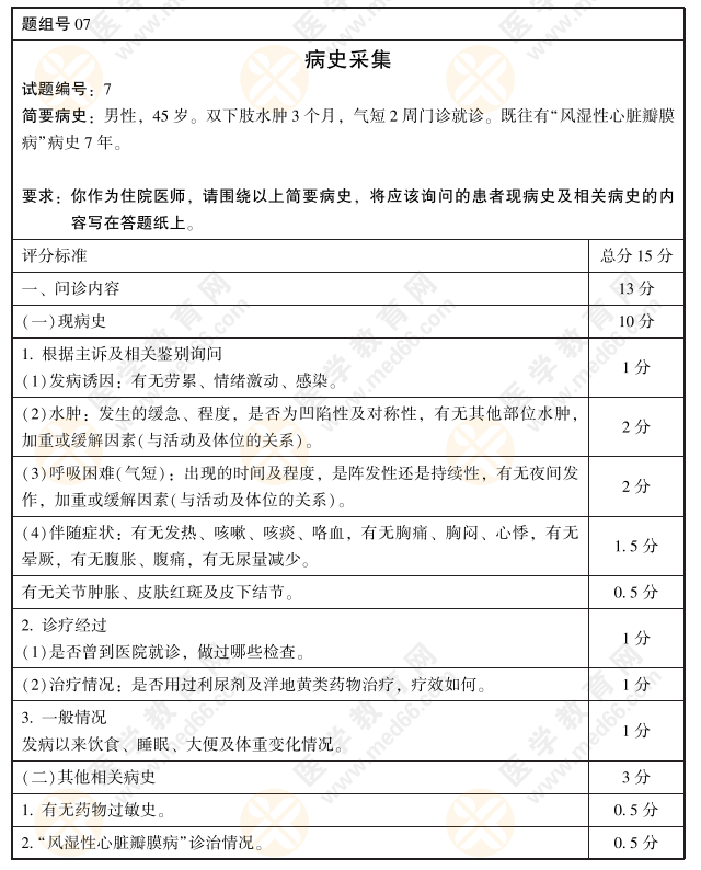 2021年臨床執(zhí)業(yè)實踐技能考官手冊——病史采集、病例分析模擬題07題3