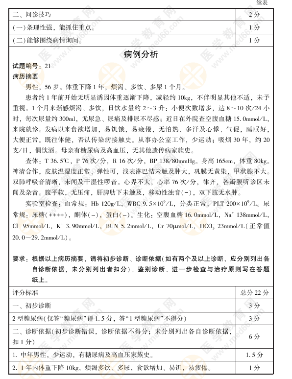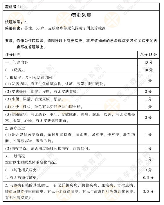2021年實(shí)踐技能考官評分手冊——第一站題組號21題(病史采集和病例分析)