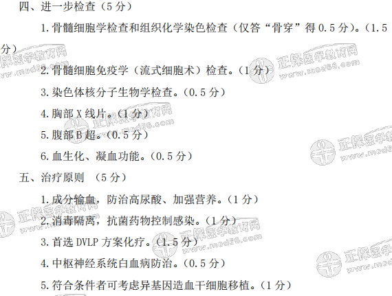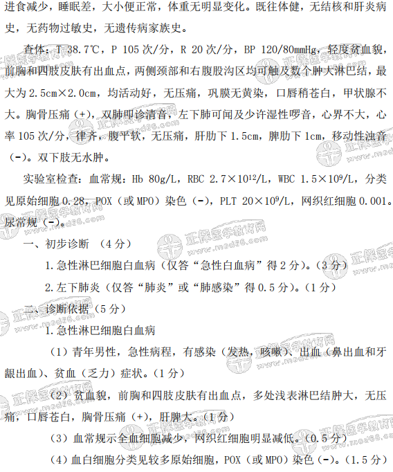- · 臨床醫(yī)師實(shí)踐技能第一站病例分析歷年考點(diǎn)題:急性淋巴細(xì)胞白血病
