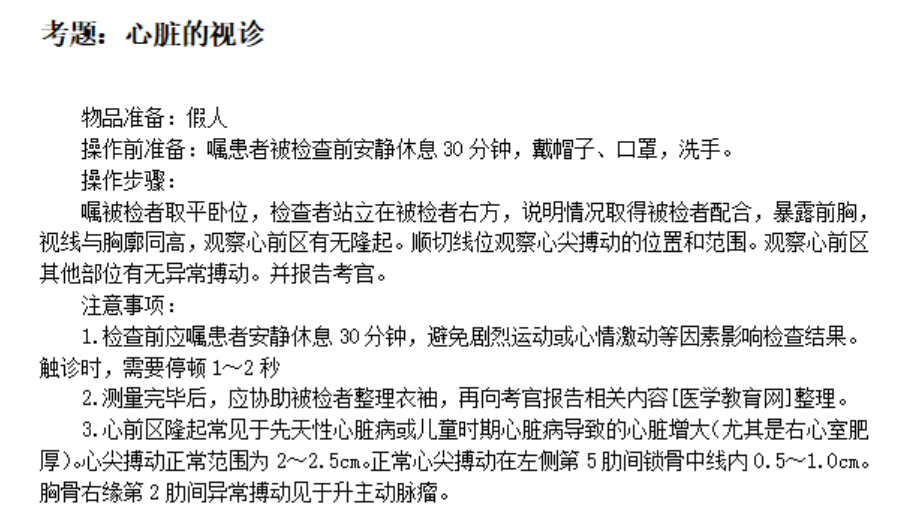 ?臨床執(zhí)業(yè)醫(yī)師體格檢查歷年考點(diǎn):心臟的視診操作步驟及注意事項(xiàng)