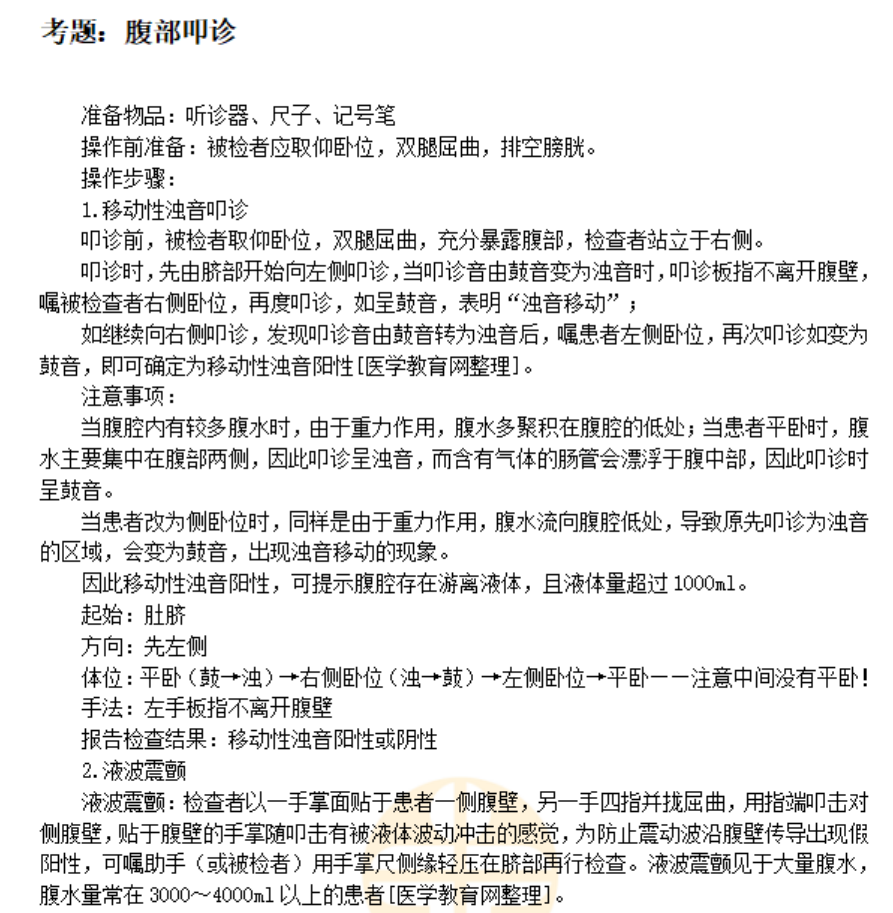 腹部叩診操作步驟及注意事項(xiàng)——臨床醫(yī)師體格檢查歷年考點(diǎn)