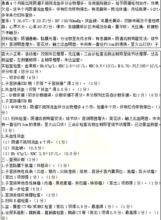 子宮頸癌考點例題:女性,50歲。陰道不規(guī)則流血伴分泌物增多4個月,加重半個月。2022年臨床醫(yī)師實踐技能考試正在進行中,醫(yī)學(xué)教育網(wǎng)編輯預(yù)祝各位考生順利參考,取得好成績!
