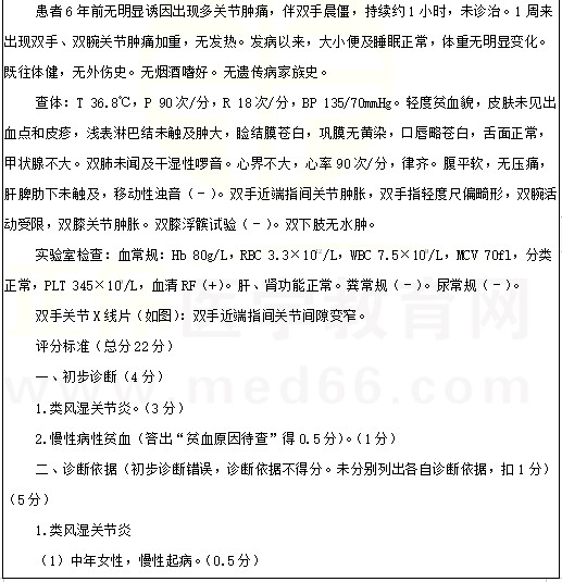 類(lèi)風(fēng)濕關(guān)節(jié)炎考點(diǎn)例題:女性,45歲。反復(fù)多關(guān)節(jié)腫痛6年,加重伴乏力1周。2022年臨床醫(yī)師實(shí)踐技能考試正在進(jìn)行中,醫(yī)學(xué)教育網(wǎng)編輯預(yù)祝各位考生順利參考,取得好成績(jī)!