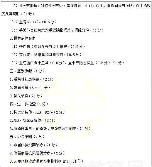 類(lèi)風(fēng)濕關(guān)節(jié)炎考點(diǎn)例題:女性,45歲。反復(fù)多關(guān)節(jié)腫痛6年,加重伴乏力1周。