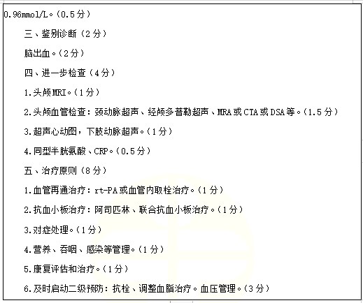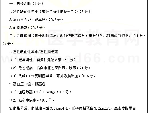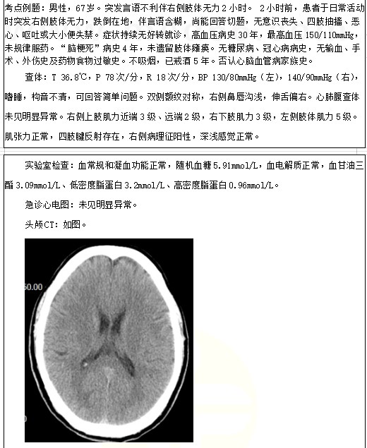 考點(diǎn)例題:男性,67歲。突發(fā)言語不利伴右側(cè)肢體無力2小時(shí)。