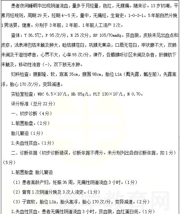 前置胎盤考點(diǎn)例題:女性,40歲。妊娠35周,陰道流血3小時。2022年臨床醫(yī)師實(shí)踐技能考試正在進(jìn)行中,醫(yī)學(xué)教育網(wǎng)編輯預(yù)祝各位考生順利參考,取得好成績!