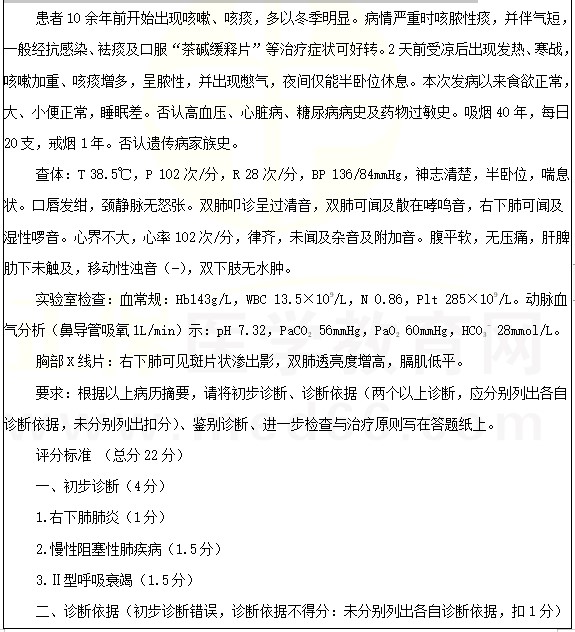 考點(diǎn)例題:男性,67歲。間斷咳嗽、咳痰10余年,發(fā)熱伴呼吸困難2天。