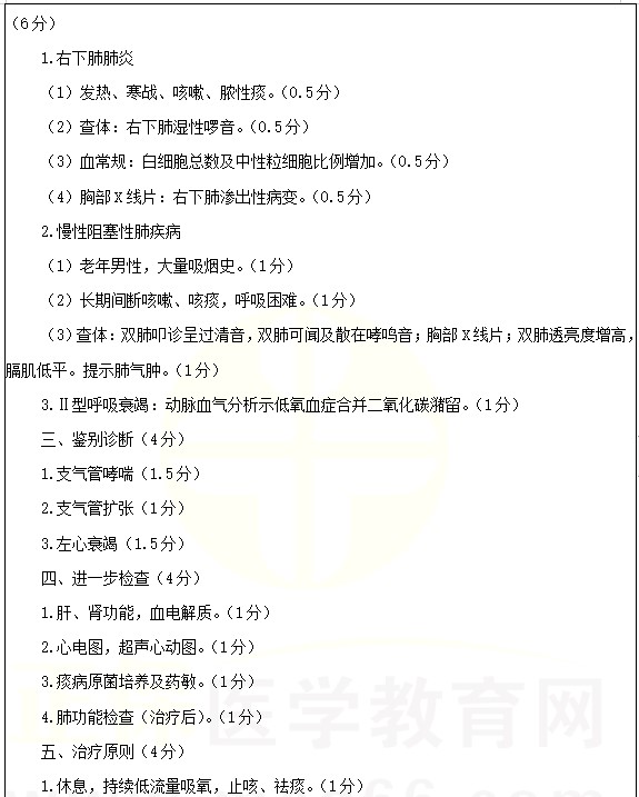 右下肺肺炎考點(diǎn)例題:男性,67歲。間斷咳嗽、咳痰10余年,發(fā)熱伴呼吸困難2天。