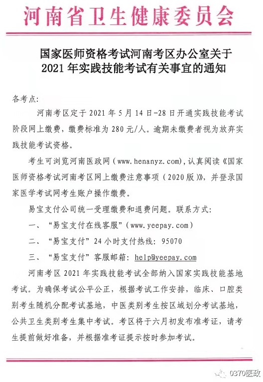 官方通知:河南考區(qū)2022年臨床執(zhí)業(yè)醫(yī)師實(shí)踐技能繳費(fèi)公告發(fā)布!