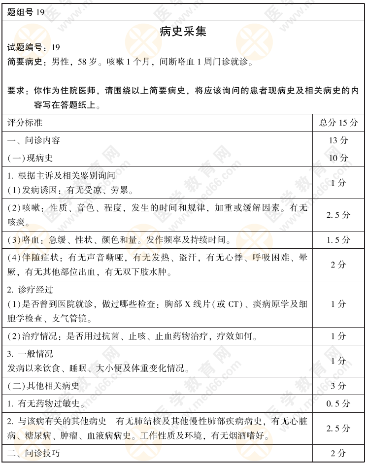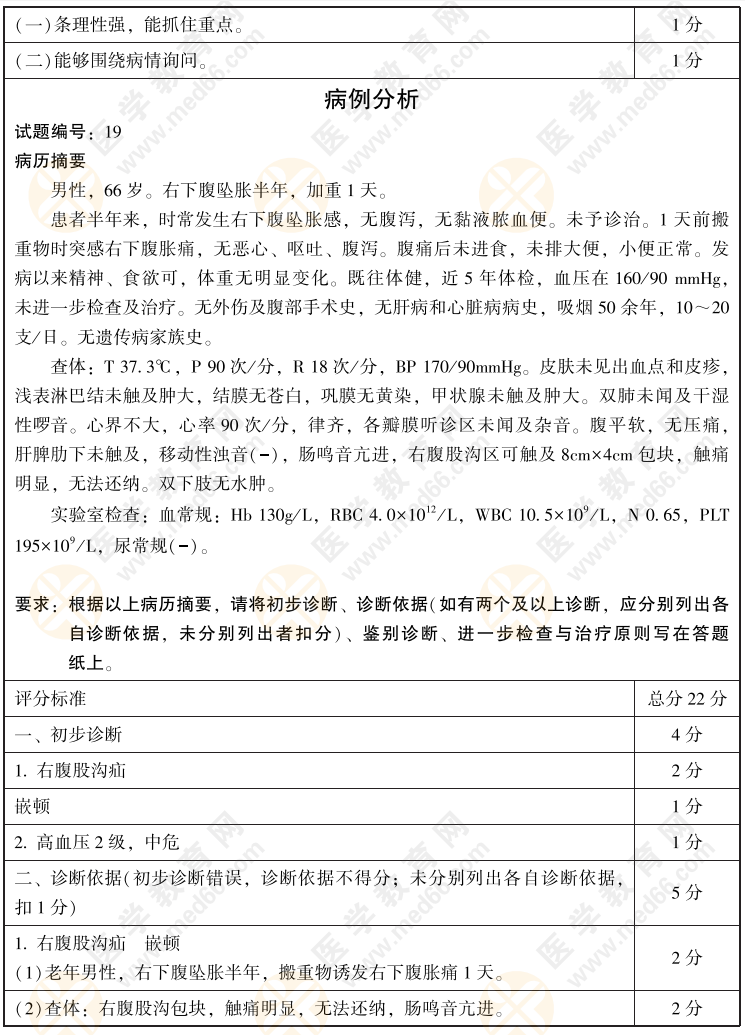 2022年臨床醫(yī)師病史采集+病例分析考前模擬卷第19套(含評分標(biāo)準(zhǔn))