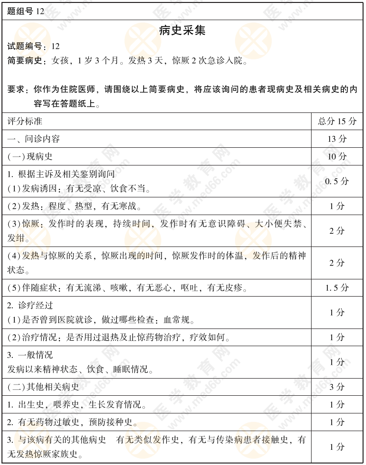 2022年臨床醫(yī)師病史采集+病例分析考前模擬卷第12套(含評分標(biāo)準(zhǔn))如下,2022年臨床執(zhí)業(yè)醫(yī)師實(shí)踐技能考試在即,醫(yī)學(xué)教育網(wǎng)整理了實(shí)踐技能考前指導(dǎo)手冊(查看活動詳情>>),包含技能各站精選模擬試題,查看2022年臨床執(zhí)業(yè)醫(yī)師技能集訓(xùn)營,暢享考前直播課>>