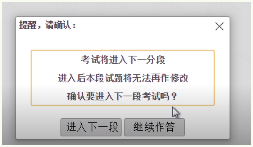③考試過程中,當(dāng)發(fā)生試題分段切換時,系統(tǒng)會繼續(xù)提醒: