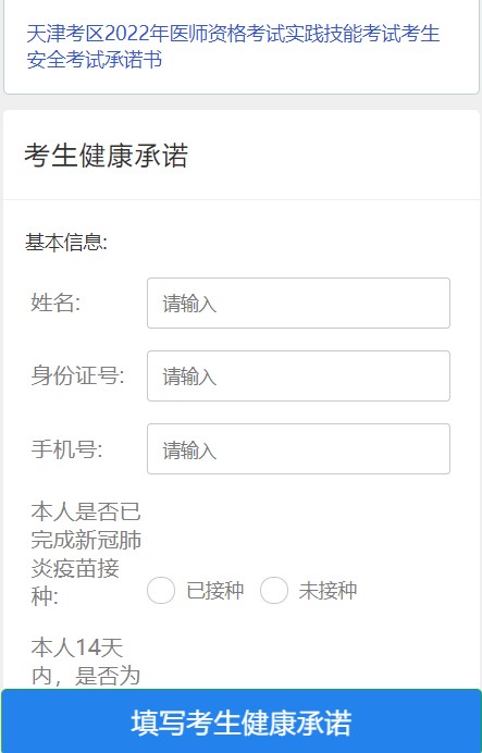 天津考區(qū)2022年醫(yī)師資格考試實踐技能考試安全考試承諾書填寫