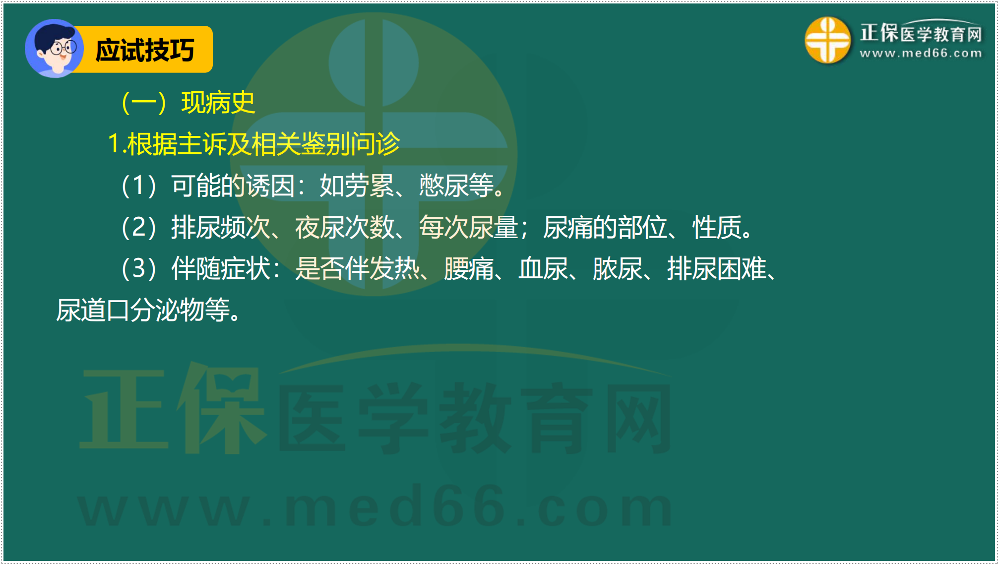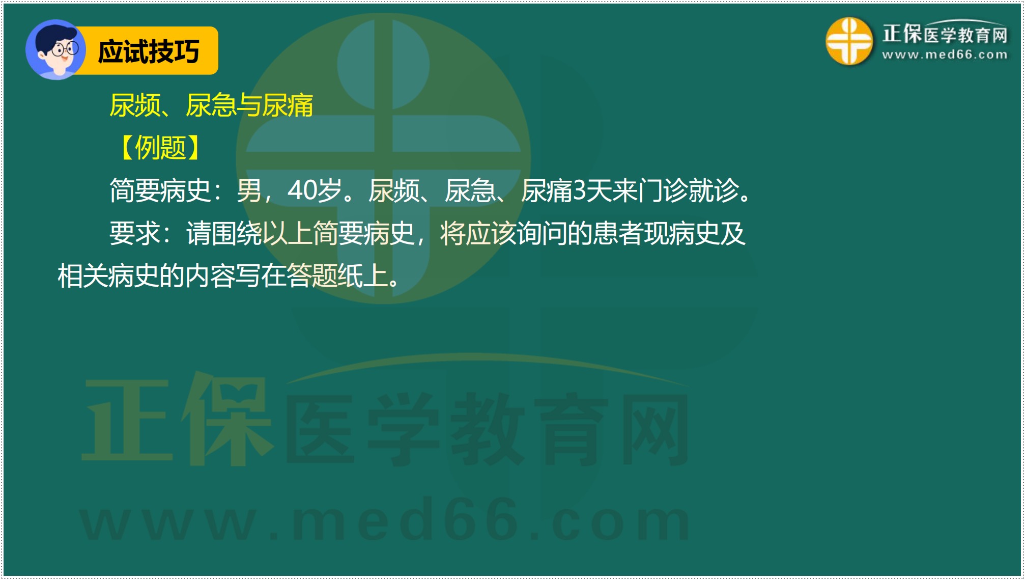 尿頻、尿急及尿痛答題模板——臨床執(zhí)業(yè)醫(yī)師技能病史采集試題練習(xí)題