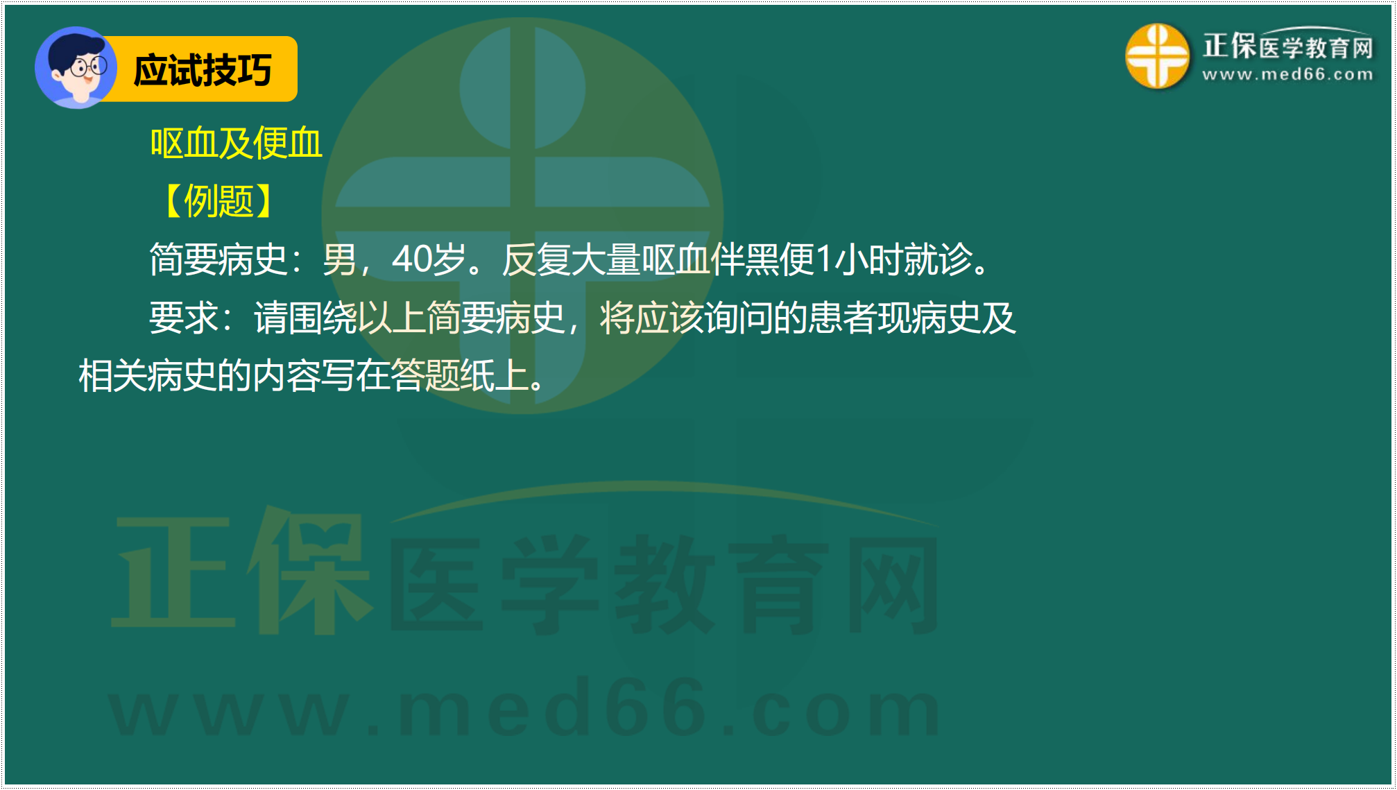2023年臨床執(zhí)業(yè)醫(yī)師技能病史采集試題練習(xí)題:嘔血及便血答題模板