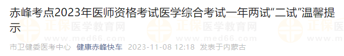 內(nèi)蒙古赤峰考點(diǎn)官方考點(diǎn)發(fā)布了2023臨床執(zhí)業(yè)醫(yī)師二試考生須知,內(nèi)蒙古赤峰2023臨床執(zhí)業(yè)醫(yī)師二試考生速看考場(chǎng)安排及注意事項(xiàng),做好應(yīng)試準(zhǔn)備!
