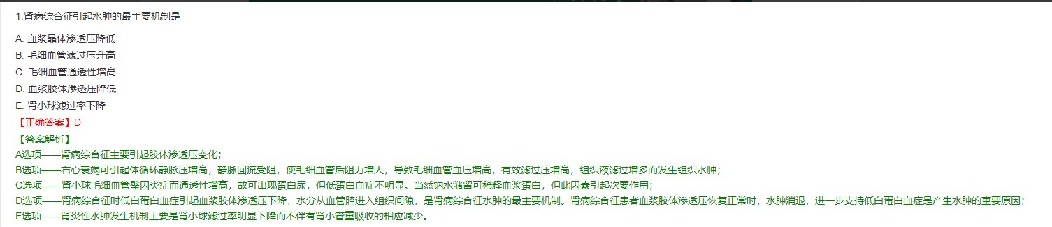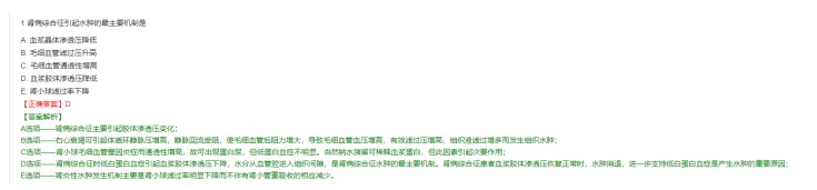 2023臨床執(zhí)業(yè)醫(yī)師考試二試考點2:腎病綜合征引起水腫的最主要機制是?
