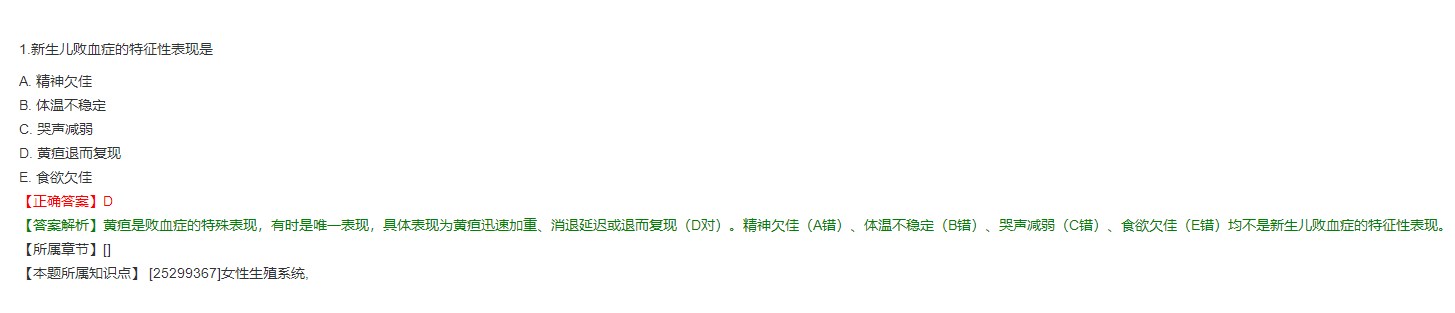 新生兒敗血癥(neonatalsepsis)是指新生兒期致病細菌侵入血液循環(huán)并繁殖、產(chǎn)生毒素,引起全身性癥狀的全身感染性疾病,它可致感染性休克及多臟器功能不全綜合征。多數(shù)患兒表現(xiàn)為反應差,精神較萎靡,吃奶減少或不吃,體溫低或體溫波動,病理性黃疸,呼吸急促、暫停、呻吟,早產(chǎn)兒B族鏈球菌敗血癥有時主要表現(xiàn)為呼吸窘迫。若病情未有效控制,可發(fā)展到感染性休克和多臟器功能不全,出現(xiàn)低血壓、腦水腫、呼吸衰竭、腎功能不全、肝功能損害、骨髓抑制、凝血功能紊亂、皮膚花紋等,亦有少數(shù)患兒起病即表現(xiàn)全身情況急驟惡化,出現(xiàn)循環(huán)衰竭、重度酸中毒、彌散性血管內(nèi)凝血、壞死性腸炎、硬腫癥等。新生兒敗血癥較易并發(fā)化膿性腦膜炎,其他并發(fā)癥有肺炎、骨髓炎、肝膿腫等。