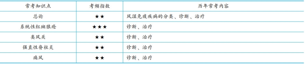風(fēng)濕免疫性疾病是所有臨床專業(yè)課中,病種最少的一個(gè)單元。一共就4個(gè)?。合到y(tǒng)性紅斑狼瘡、類風(fēng)濕關(guān)節(jié)炎、強(qiáng)直性脊柱炎、痛風(fēng)。核心考點(diǎn)明確,每年命題點(diǎn)也集中。認(rèn)真復(fù)習(xí),全部得分點(diǎn)都可以搞定。