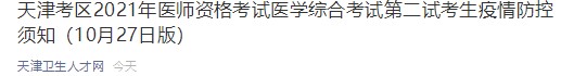 2021年臨床執(zhí)業(yè)醫(yī)師天津考區(qū)二試考前疫情防控須知(10月27日版)