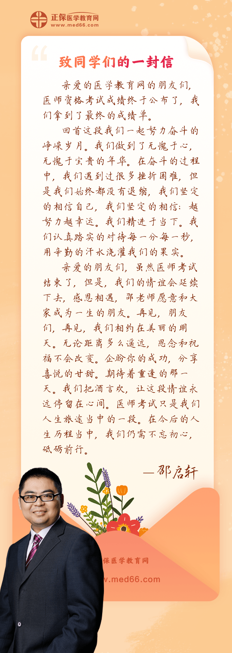 精進于當(dāng)下,不忘初心,砥礪前行!-醫(yī)學(xué)教育網(wǎng)講師(邵啟軒)致同學(xué)的一封信!