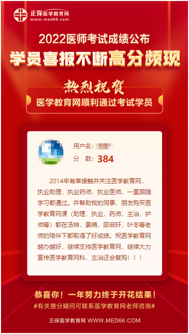 2022醫(yī)師資格考試成績終于塵埃落定,你查分了嗎?(快速查分入口>>),網(wǎng)校自成績公布后收到了來自全國各地學(xué)員的好評(píng)!以下來自一位通過臨床執(zhí)業(yè)醫(yī)師考試學(xué)員的感謝!