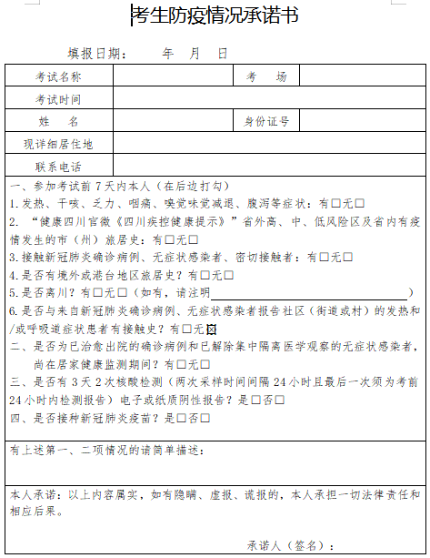 四川瀘州考點2022年醫(yī)師資格考試“一年兩試”考試所需《考生防疫情況承諾書》下載