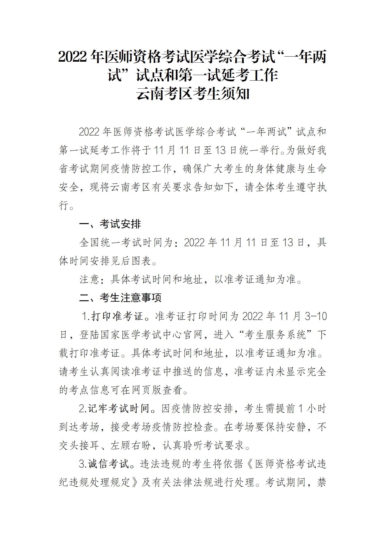 2022年臨床執(zhí)業(yè)醫(yī)師綜合考試“一年兩試”試點(diǎn)和第一試延考工作云南考區(qū)考生須知