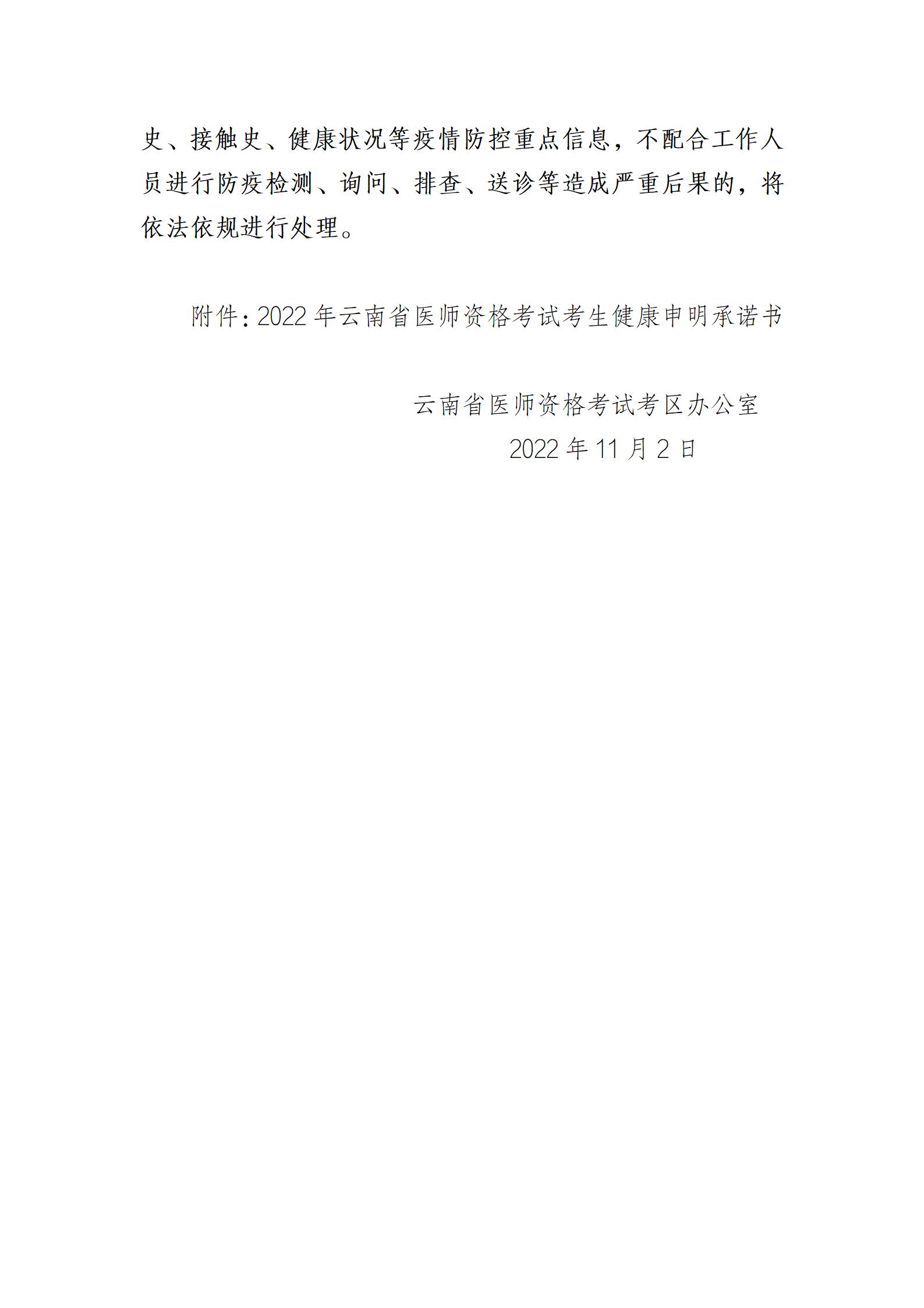 附件:2022年云南省醫(yī)師資格考試考生健康申明承諾書