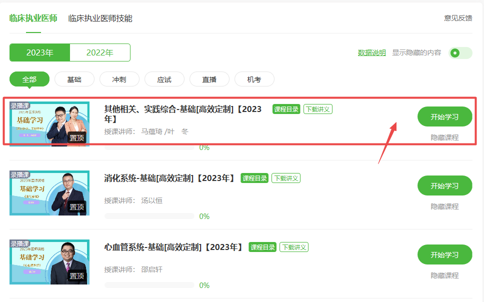 2023年臨床執(zhí)業(yè)醫(yī)師其他相關(guān)、實踐綜合基礎(chǔ)班課程已經(jīng)開通!